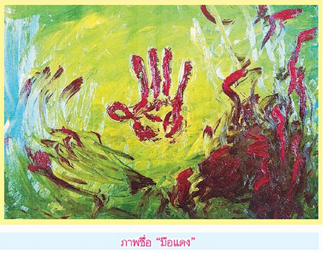 ภาพแสดงออกของอารมณ์และความรู้สึกภายในอย่างอิสระ (Expression) เป็นภาพที่ทรงสร้างสรรค์ขึ้นในช่วงหลังๆ ทั้งนี้ ผลงานจิตรกรรมฝีพระหัตถ์ จะมีรูปแบบทั้งที่มีข้อมูลจากความเป็นจริง กึ่งเหมือนจริงกึ่งนามธรรม และรูปแบบนามธรรม เนื้อหาจากแนวทางดังกล่าว แสดงออกด้วยอารมณ์ ความรู้สึก ของพระองค์ อาทิ ภาพชื่อ มือแดง, วัฏฏะ, ไฟป่า, ดินน้ำลมไฟ