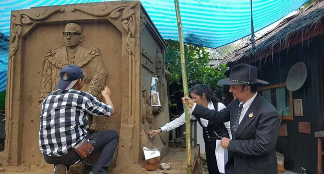 ทั้งนี้ ยังได้ผลิตภาพแกะสลักบนไม้เป็นพระบรมฉายาลักษณ์ของในหลวง รัชกาลที่ ๙ ขนาดใหญ่ เป็นภาพนูนต่ำ ส่วนภายในบริเวณรีสอร์ทของนายสุรินทร์ ยังได้ทำการก่อประติมากรรมทรายอย่างสวยงาม เกี่ยวกับพระราชกรณียกิจของในหลวง ให้ได้เยี่ยมชมเพื่อเป็นการสำนึกในพระมหากรุณาธิคุณอย่างหาที่สุดมิได้ และเพื่อให้ประชาชนทั่วไปที่เข้ามาเยี่ยมเยือนรีสอร์ทได้ถ่ายรูปเป็นที่ระลึกกันอย่างสวยงาม
