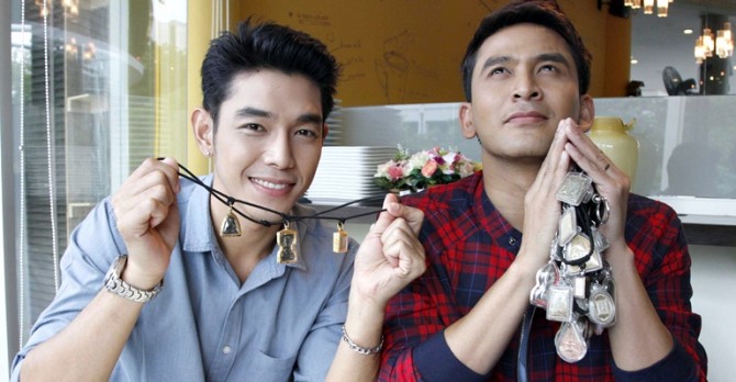 ช่วงบ่ายๆ ของวันนัด ว่าที่คุณพ่อมือใหม่ “ป๋อ” ก็เดินพา “อาร์ต” เข้ามาทักทายทีมงานคมชัดลึก ก่อนที่ทุกคนจะเหลือบไปเห็นกระเป๋าสีดำใบใหญ่ ที่พระเอกผิวเข้มถือมาด้วย หลังจากทักทายกันพอเป็นพิธี ป๋อก็เริ่มบรรเลงด้วยการโชว์ของหวงที่เด็ดที่สุด “กะลาตาเดียว” วัตถุมงคลอันเลื่องชื่อ โดยป๋อได้เล่าเรื่องของกะลาตาเดียวให้อาร์ตฟังว่า “กะลาตาเดียว คนที่ดวงตก หรือคนที่เดินทางไปอยู่ในที่ๆ อโคจร อย่างเวลาเราไปถ่ายละครในที่ที่หนึ่ง เราอาจจะไม่รู้ว่าที่แห่งนี้ มีอะไรมาก่อน กะลาตาเดียวจะช่วยกันได้หมดเลย ที่กะลาตาเดียวจะมีจันทรประภา กับสุริยประภา ที่จะเป็นบทสวด” พูดจบป๋อก็หันมาถามน้องชายคู่หูว่าเกิดวันอะไร หนุ่มอาร์ตตอบทันควัน “วันพุธ” พระเอกผิวเข้มถามต่อว่า “วันพุธต้องห้อยพระอะไร” หนุ่มอาร์ตส่ายหัวแล้วถามสวนกลับหาพี่ชายทันที พร้อมมองหน้าเพื่อรอคำตอบแต่คำตอบที่ได้คือ “พี่ก็ไม่รู้เหมือนกัน” ทำเอาทั้งคู่หัวเราะกันร่วน